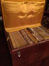Полный серебряный столовый набор работы Пьера Кейля ( Pierre-François QUEILLÉ ). Начало 19-го века. Франция, Париж. 100% комплектация, 159 предметов. 950 экспортная французская проба. Оригинальная упаковка. Общий вес предметов 7,939 г. Общий вес с упаковкой 12,2 кг. |